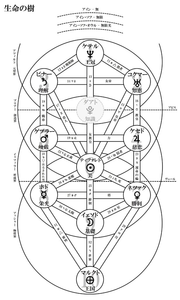 | – | ダアト | 知識 | 冥王星、空気 | 22枚のトランプ |