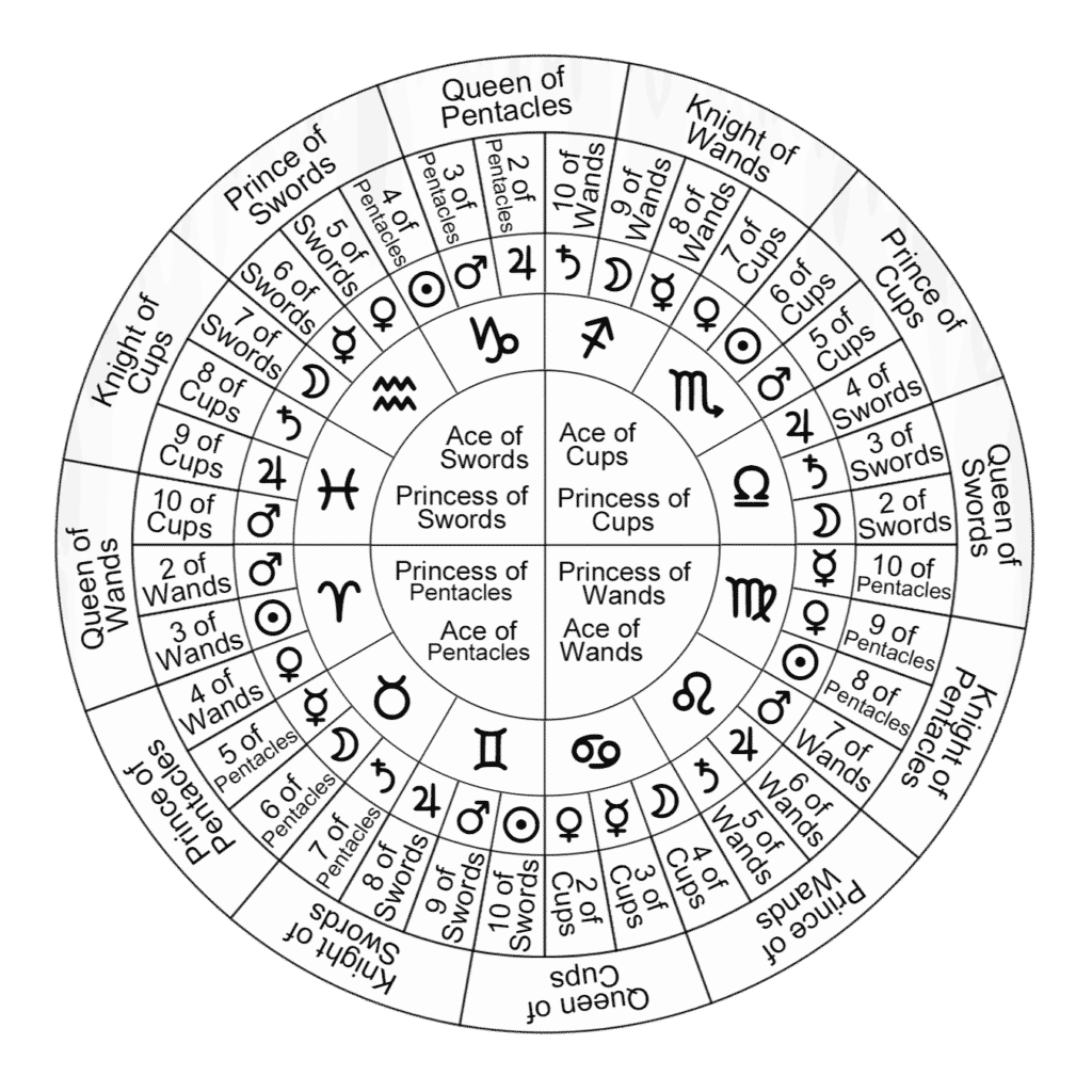 タロットカードの小アルカナには、各カードに対応するデカンが割り当てられており、占星術との対応関係があります。